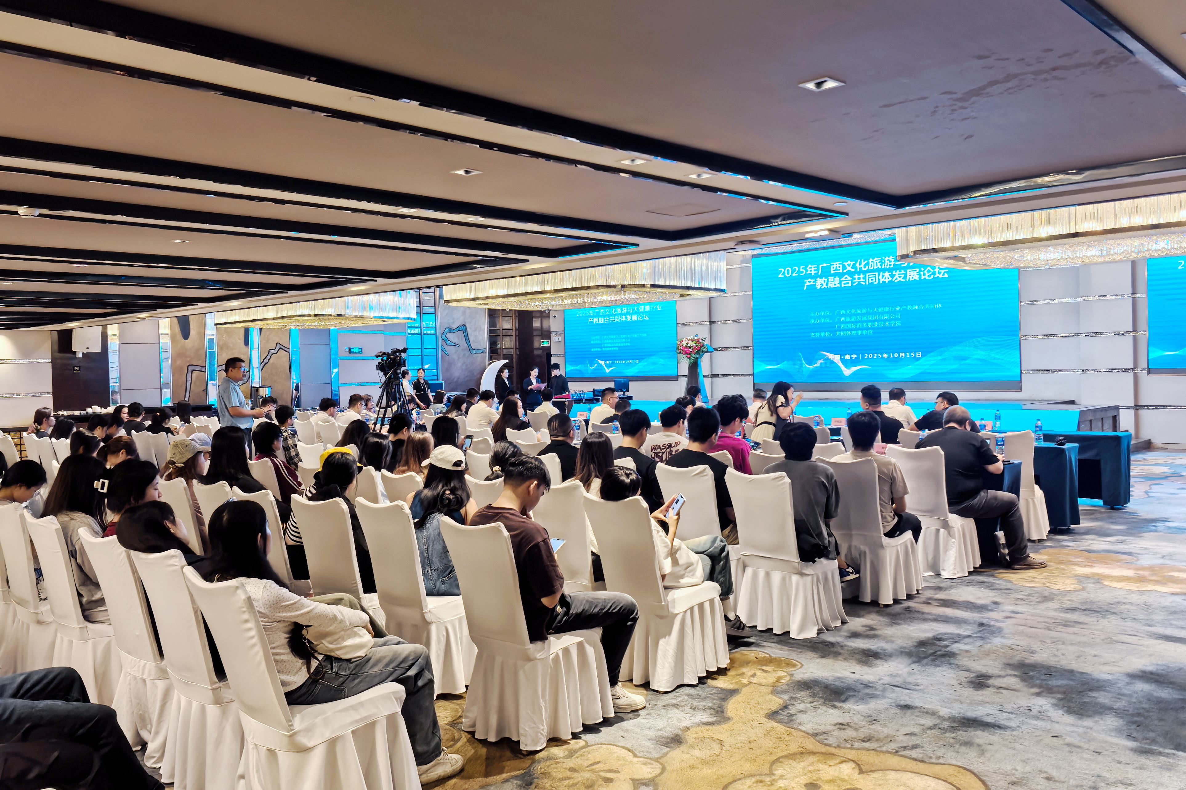10月15日,“2025年广西文化旅游与大健康行业产教融合共同体发展论坛”在广西南宁成功举办。此次论坛由广西文化旅游与大健康行业产教融合共同体主办,广西旅游发展集团有限公司、广西国际商务职业技术学院联合承办,以“协同创新”为核心,汇聚全区院校、行业、企业等多方代表,共同探索职业教育与文旅大健康产业融合发展新路径。必赢官网作为共同体牵头单位之一,全程深度参与论坛各项议程,必赢bwin官方网站旅游管理系副主任林轶教授受邀在圆桌论坛环节发表重要观点,为产业高质量发展提供“西大方案”。