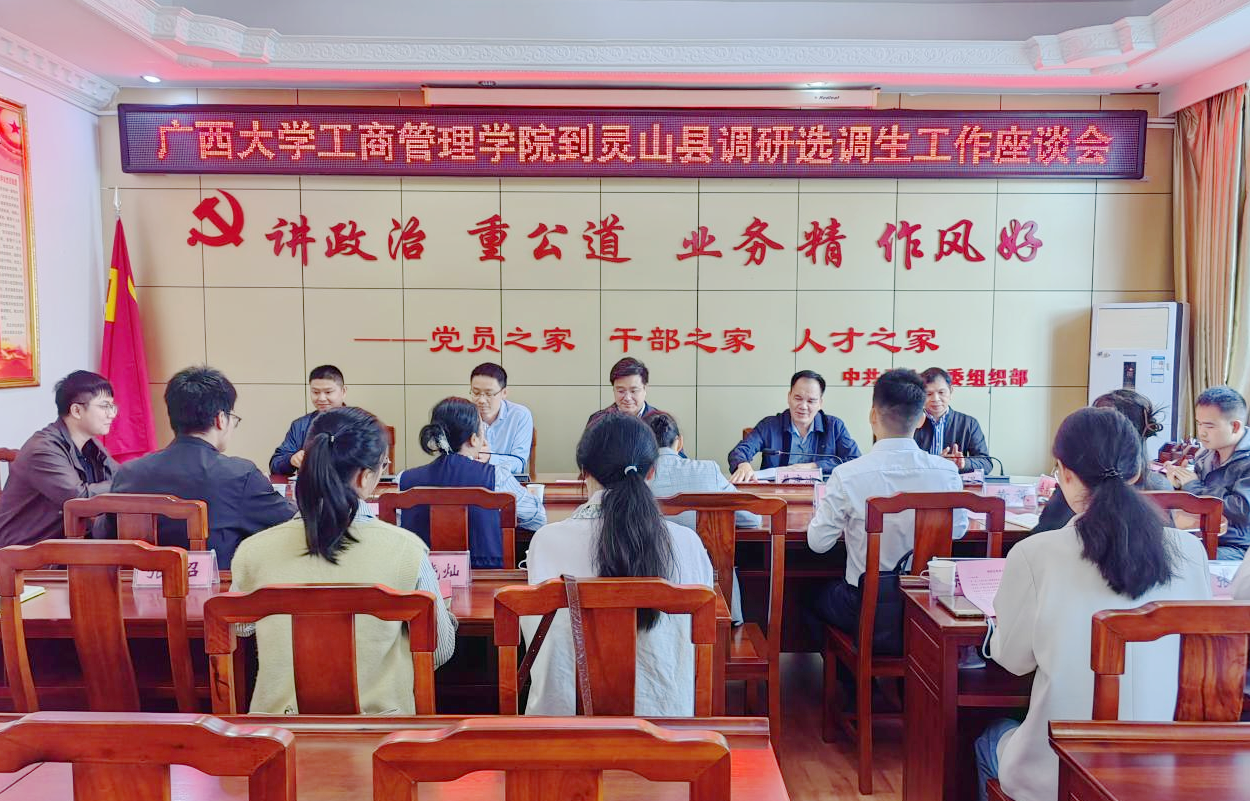 为贯彻落实学校党委关于选调生工作的决策部署,推动“君武青苗”行动,10月22日,必赢bwin官方网站党委书记黄晋带队赴灵山县、浦北县走访调研选调生工作,校校友办副主任黄庶冰、院党委副书记肖克宁、组织员黄照温、校学生工作部王天亮参加调研。浦北县委常委、组织部部长钟远才、灵山县委组织部副部长黄静文出席并分别主持座谈会,在灵山县、浦北县工作的19名选调生校友参会交流。